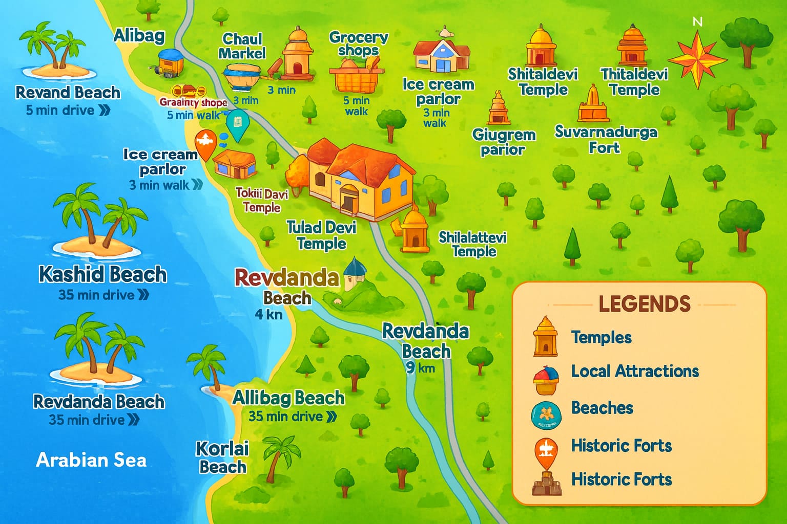 - Revadanda Beach and Agarkot Fort (within 15 minutes)